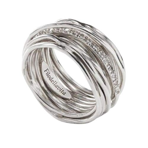 Anello Filodellavita (AN13ABT) 13 fili in argento e 16 diamanti bianchi