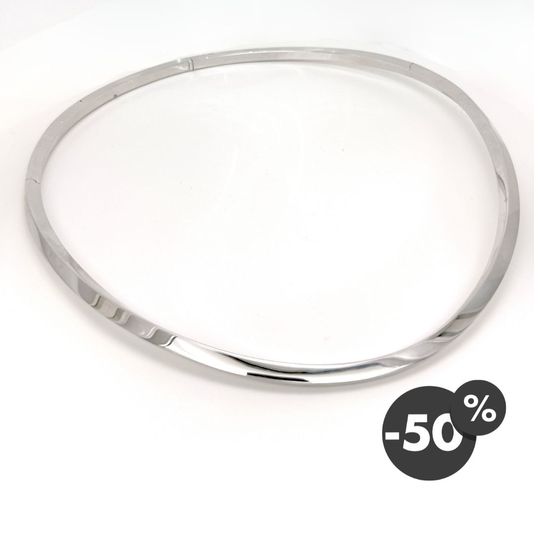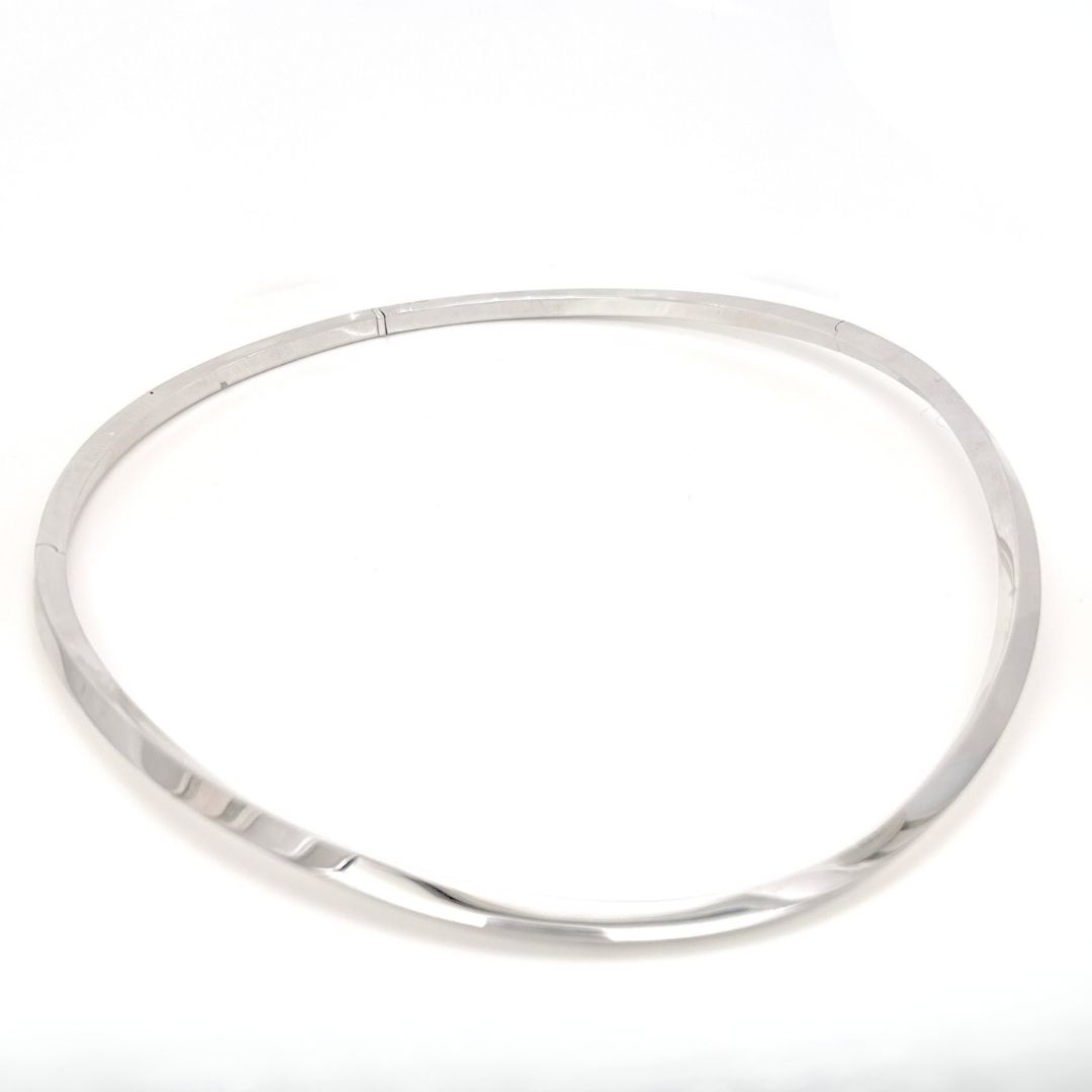 Raffinato ed essenziale, questo girocollo rigido in oro bianco è un gioiello di grande eleganza, perfetto per chi ama uno stile pulito ma deciso.