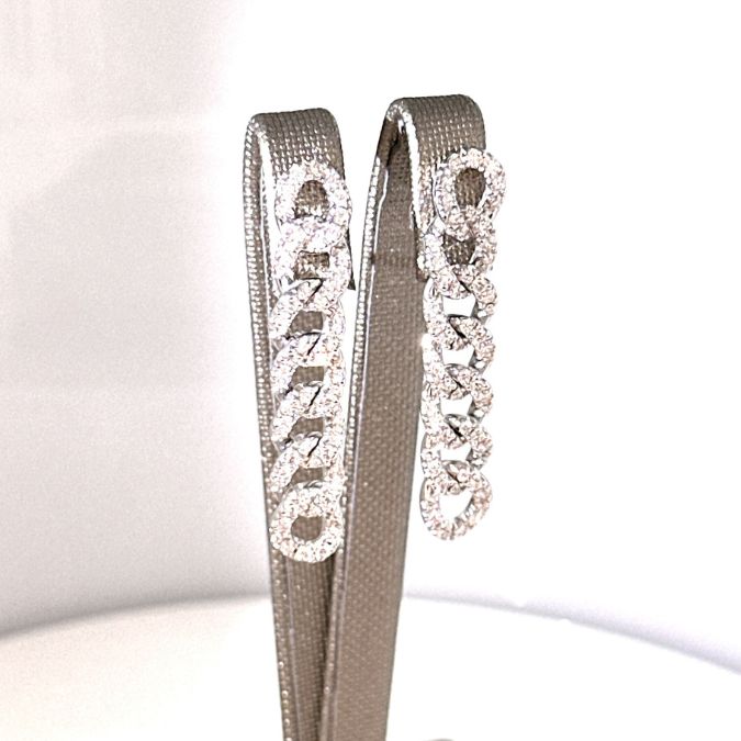 Eleganti orecchini a catena groumette in oro 18kt, impreziositi da 1,35 carati di diamanti bianchi di colore F.