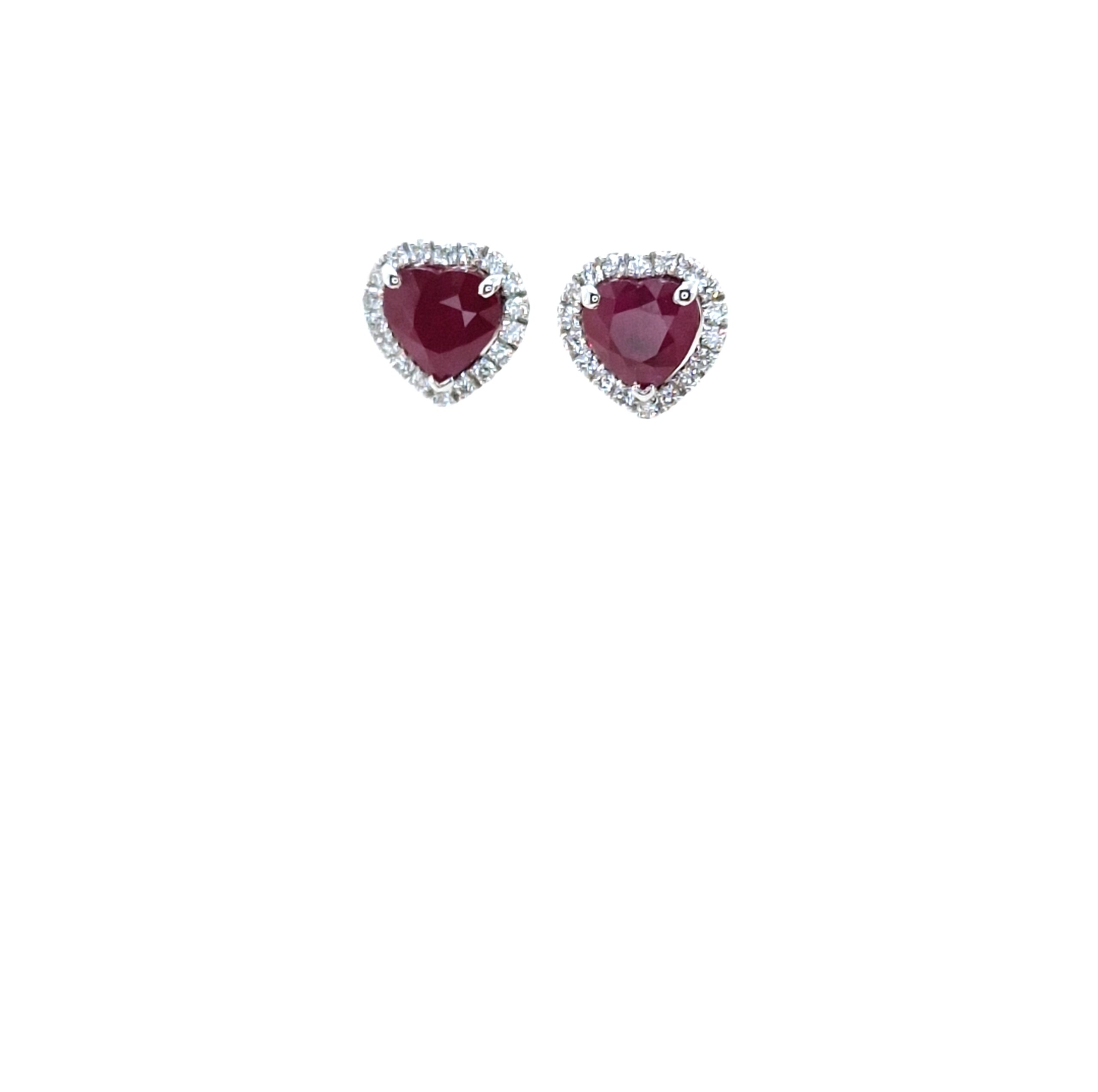 Orecchini in Oro Bianco 18kt con Rubini a Cuore e Diamanti F-Color