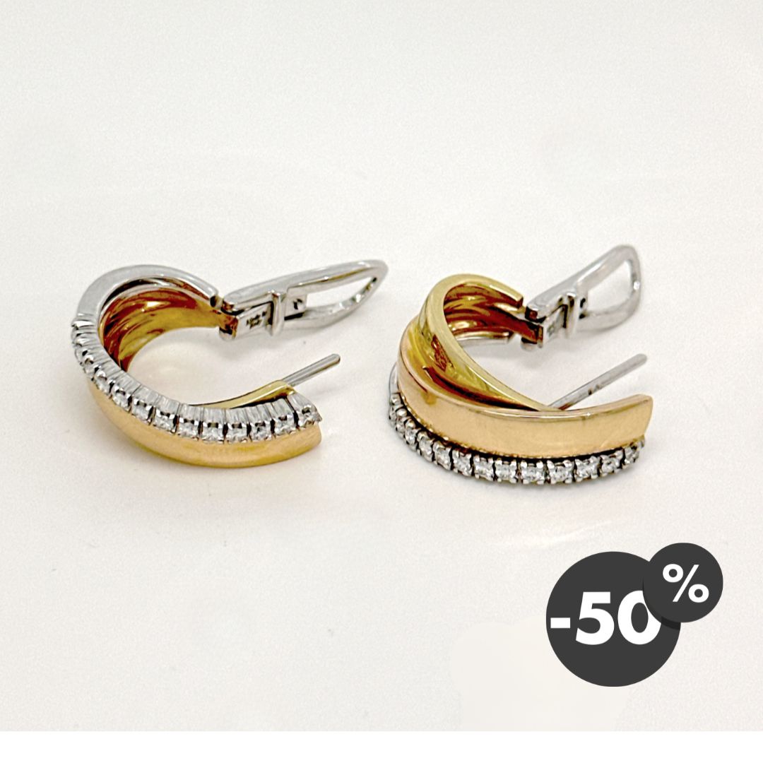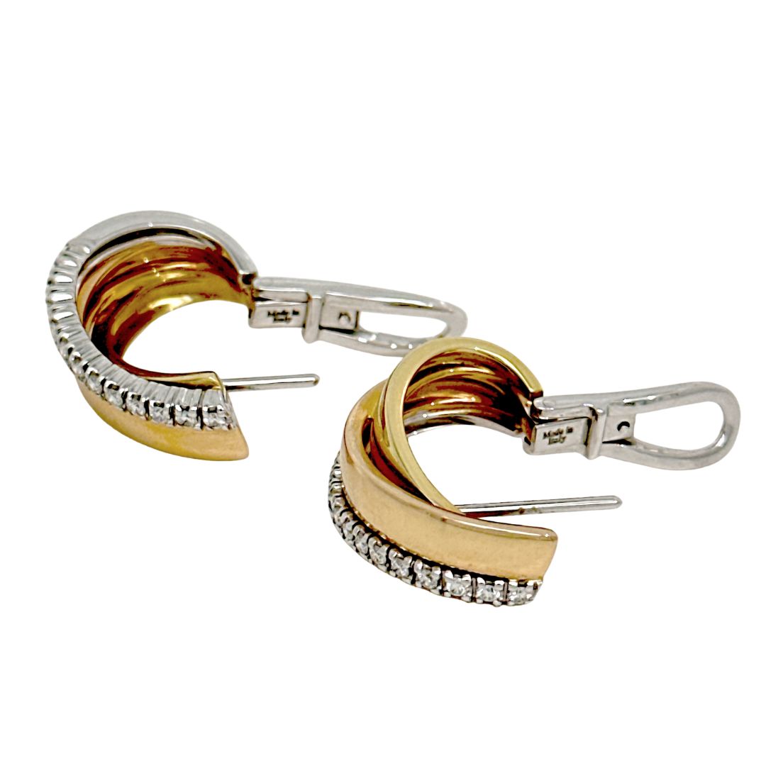Raffinati orecchini realizzati in oro giallo, bianco e rosa, dal design elegante e senza tempo.